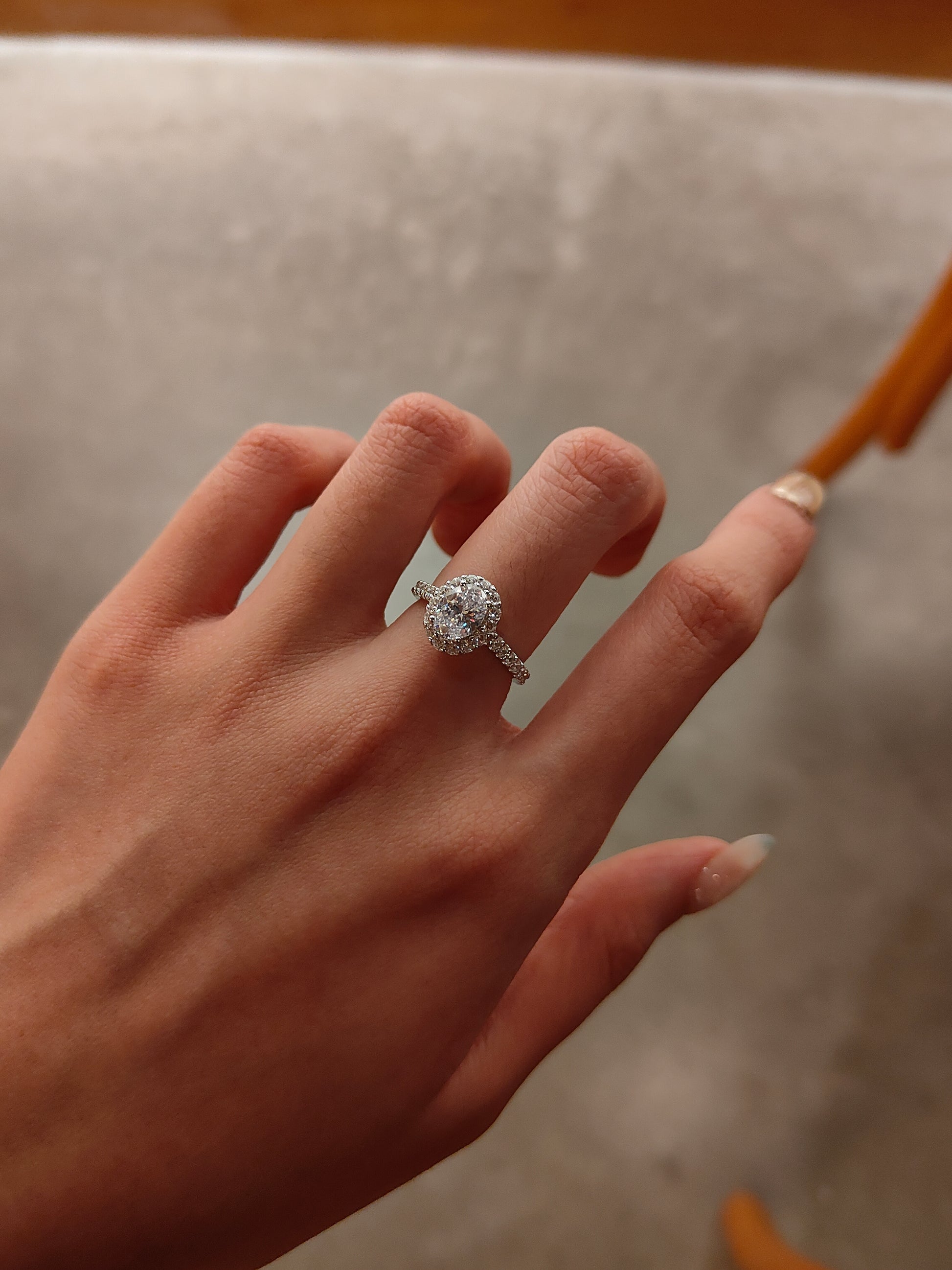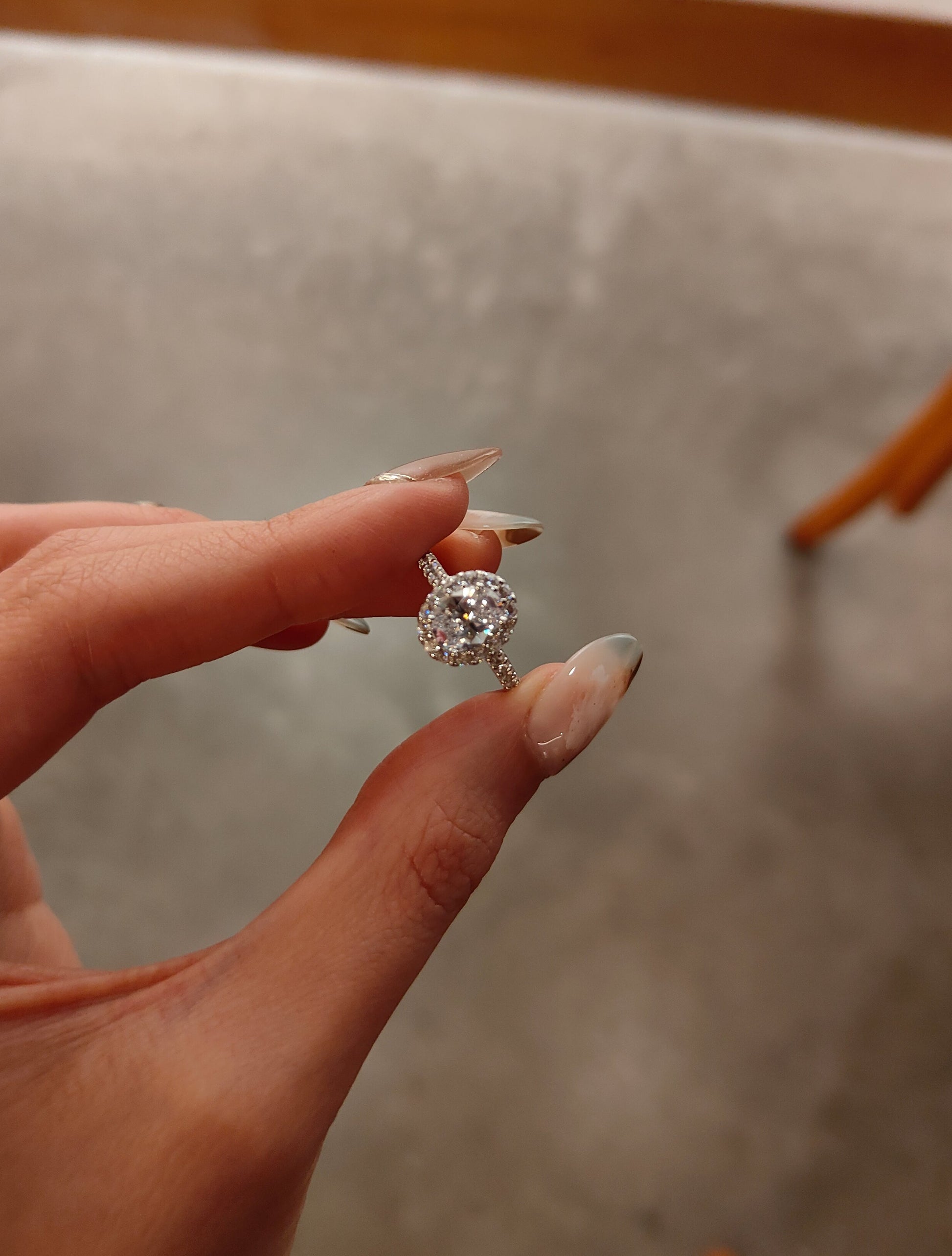 主鑽搭配一圈小碎鑽鑲嵌,使整體設計更加華麗😍完全是夢中訂婚戒的款式!